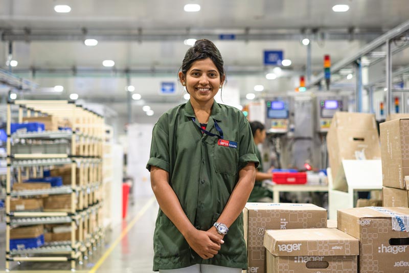 As a centre of industry and research, the town of Pune has more than 100 technical colleges and universities and is therefore an excellent source for highly qualified, technically skilled labour. All 150 production employees at Hager India are women. As Huzefa explains, “…we are doing our bit to strengthen the role of women in Indian society.” At Hager India, not only do these production employees and their 75 colleagues in marketing, sales and administration enjoy an exceptionally modern workplace, the facility is also extremely safe.