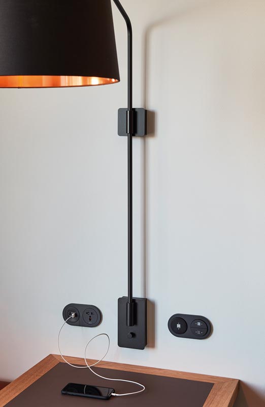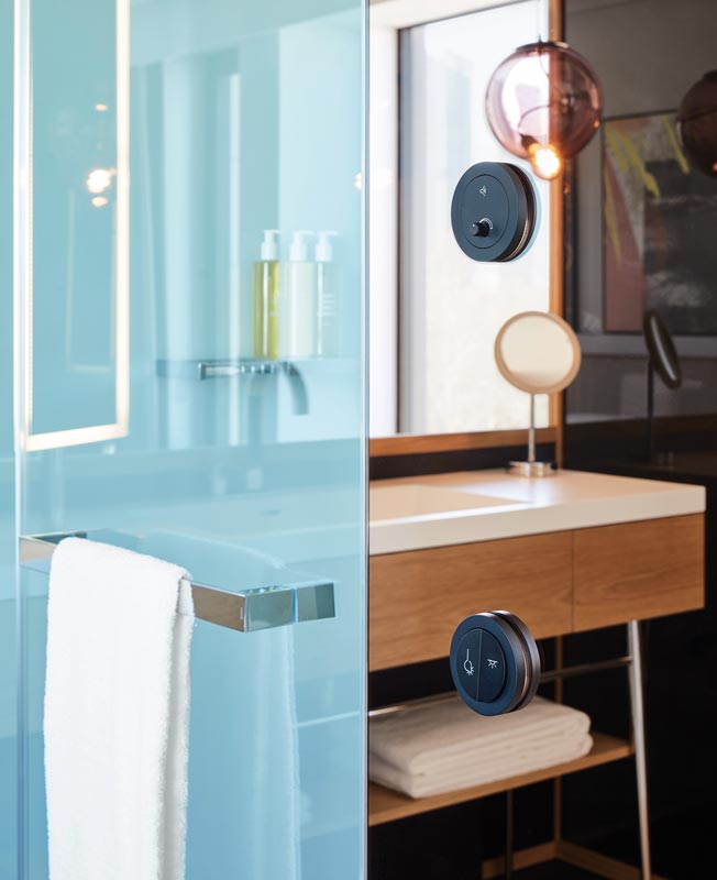 这个系列的开关具有一种永恒之美。在几乎称得上是小套房的42平方米客房内,这些开关与房内的高端装潢和谐相融。另一个加分项是,我们能够自己指定想要的柔软触感饰面,然后由海格Manufaktur为我们量身定制。因此,这些开关不仅细节精致,而且独一无二。正是所有这些微小细节,让安达仕这样的酒店彰显出了别样风采。
