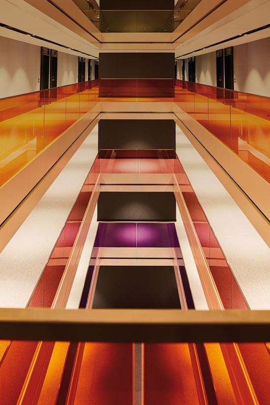 所以,我们在设计酒店时,就已经在最初的草图上说明了灯光将要营造的效果。例如,在安达仕酒店的门厅中,迎接宾客的是展现慕尼黑辽阔天空的视频装置。整体感觉十分明亮开敞。门厅直通酒吧和休息区。这个区域的照明更为温馨私密,营造出了轻松闲适的氛围。酒店员工欢迎你的方式同样重要,作为宾客,你受到的迎接不应是僵硬呆板的,而应是热情专业的。