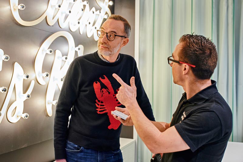 Just how seriously he takes this claim becomes clear during the very first customer visit of the day. ‘My Client is Rich’ is a marketing strategy and web design agency in central Strasbourg. The creative agency was founded in 2011 and assists customers throughout France, Germany and Belgium with their brand presence. ‘My Client is Rich’ sets its sights just as high when it comes to its own image; the offices are in fact a spacious blend of loft, studio, office, bar and exhibition area. The illuminated ‘My Client is Rich’ sign that fills one wall is an eye-catching feature; when darkness falls, a party-like atmosphere can be created in part of the loft thanks to ultraviolet light and a rotating disco ball. “We occasionally use our office as a party and concert venue,” explains agency boss Nicolas Schuster, referring to the unusual decor. The partnership with ‘Séb’, as Nicolas calls the electrician, for the electrical planning and installation of the loft was excellent.